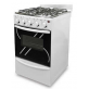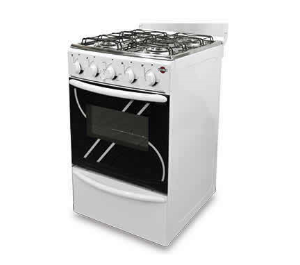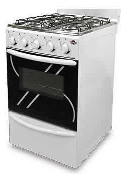4 h. Tapa de vidrio. Mesada de acero inox. Enc. eléc. Luz en el horno. Horno autolimpiante. Protector trasero. |