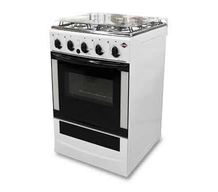 4 h. Mesada de acero inox. Quem. de aluminio. Horno visor con doble vidrio. Con protector trasero. Enc. eléctrico. |
